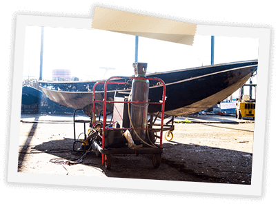 Onze eerste werkplek werd Amsterdam Noord, de bakermat van de scheepsbouw. Eerst aan de NDSM werf en later verhuisden we naar een prachtige plek met havenkraan aan de Nieuwendammerdijk 534, naast de Oranje werf. Door ons enthousiasme kregen we veel hulp aangeboden van doorgewinterde botenbouwers, lassers en alleskunners. Zonder hun hulp waren we nooit zo goed in ons werk geworden. De meeste van hen zijn nog steeds kind aan huis.